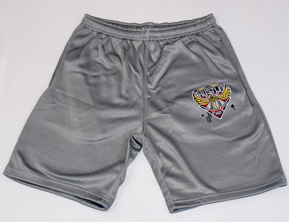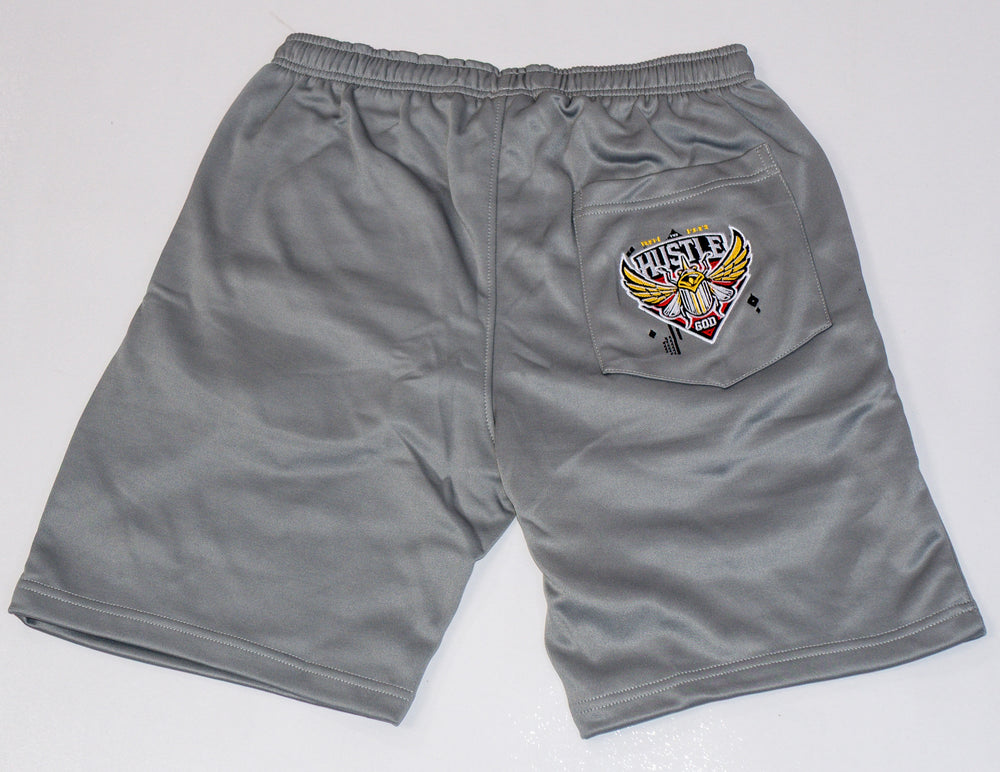 For the true hustler, our Cool Grey Shorts are a stylish representation of the grind. Made with a cotton and polyester blend, they offer a relaxed fit and feature the iconic hustle god logo On the front left leg and right back pocket.